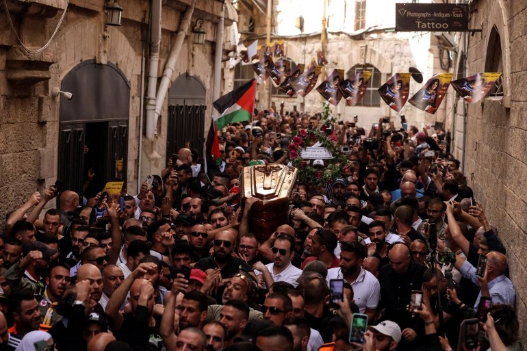 Thousands of people gathered for Abu Akleh’s funeral on Friday, including family, friends, and those who only knew Abu Akleh as a mainstay for 15 years in Al Jazeera’s coverage of the occupied Palestinian territories and the lives of everyday Palestinians