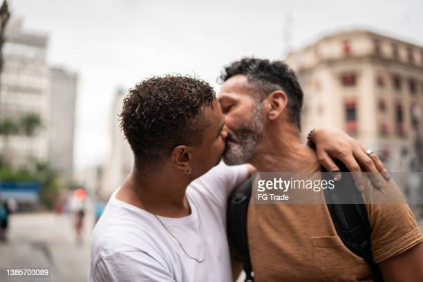 Gay couple kissing in the street